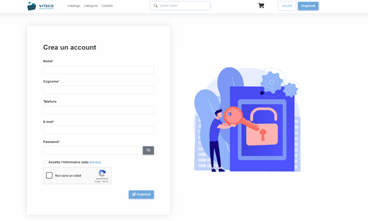 Dopo aver compilato i campi richiesti, accettare l’informativa sulla privacy e cliccare sul CAPTCHA Non sono un robot. Successivamente cliccare sulla voce Registrati per salvare le informazioni inserite. Una volta che la registrazione è andata a buon fine, l’utente riceverà un’email tramite la quale confermare l’iscrizione.