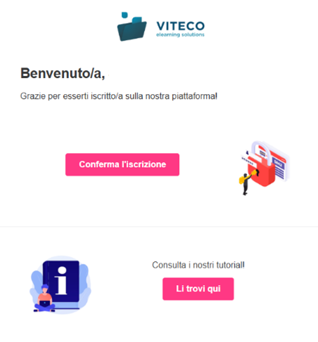 I corsisti potrebbero non essere attivati automaticamente. Pertanto, se l’amministratore della piattaforma lo ha previsto, sarà necessario confermare la propria identità, cliccando sul link ricevuto alla casella email utilizzata per la registrazione.