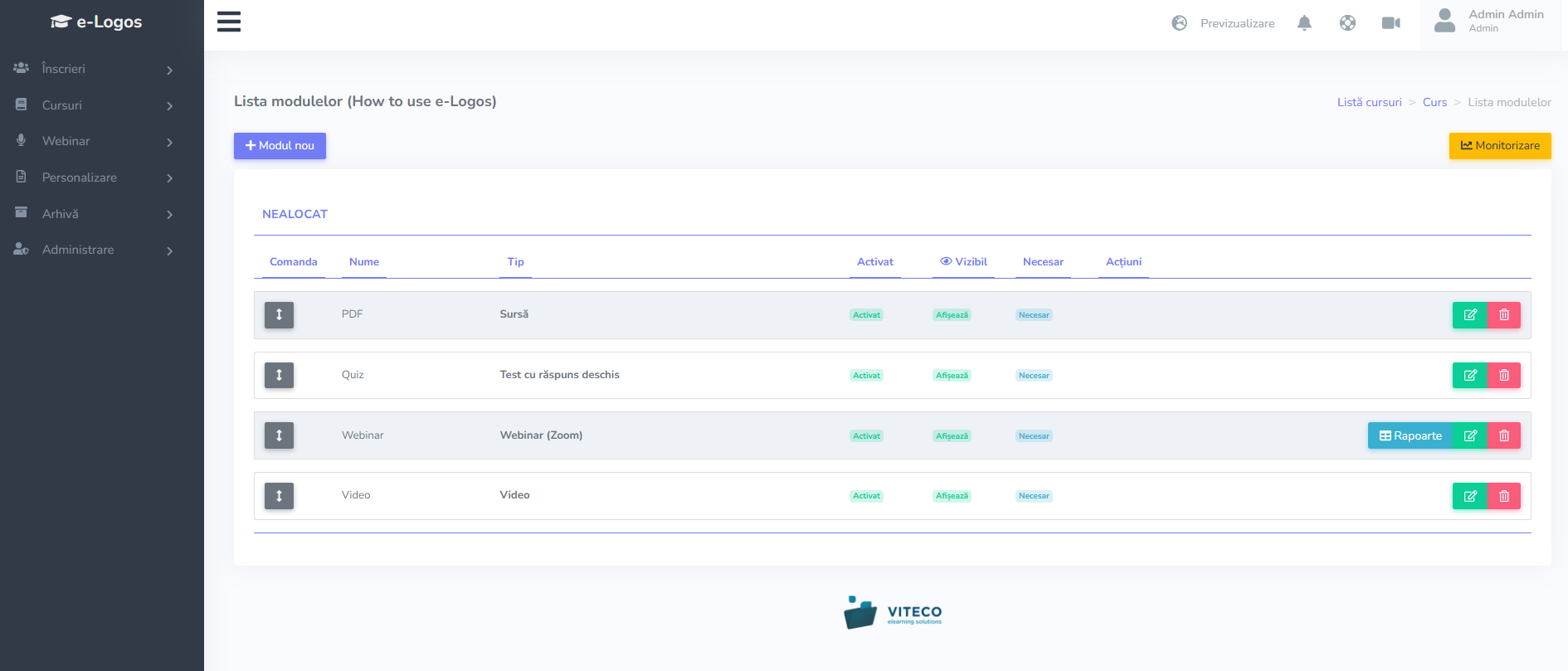 Gestionează cursurile și creează module dinamice